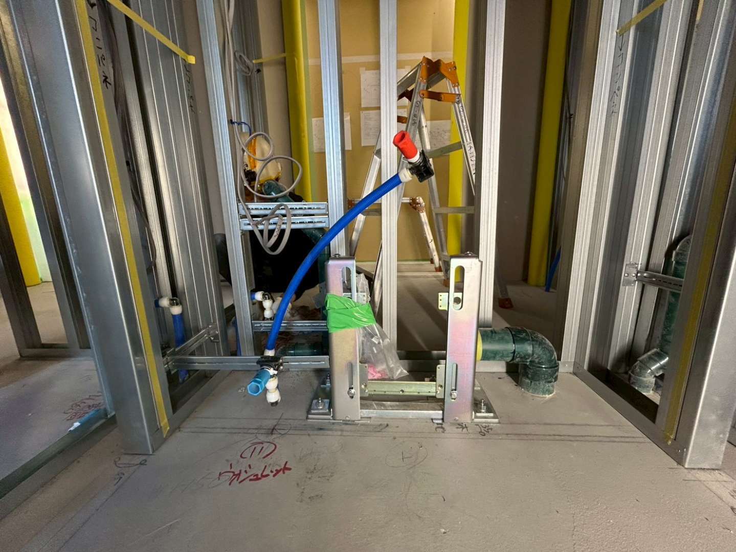 天井配管の撤去及び新設配管工事、水圧テスト、通水テスト完了