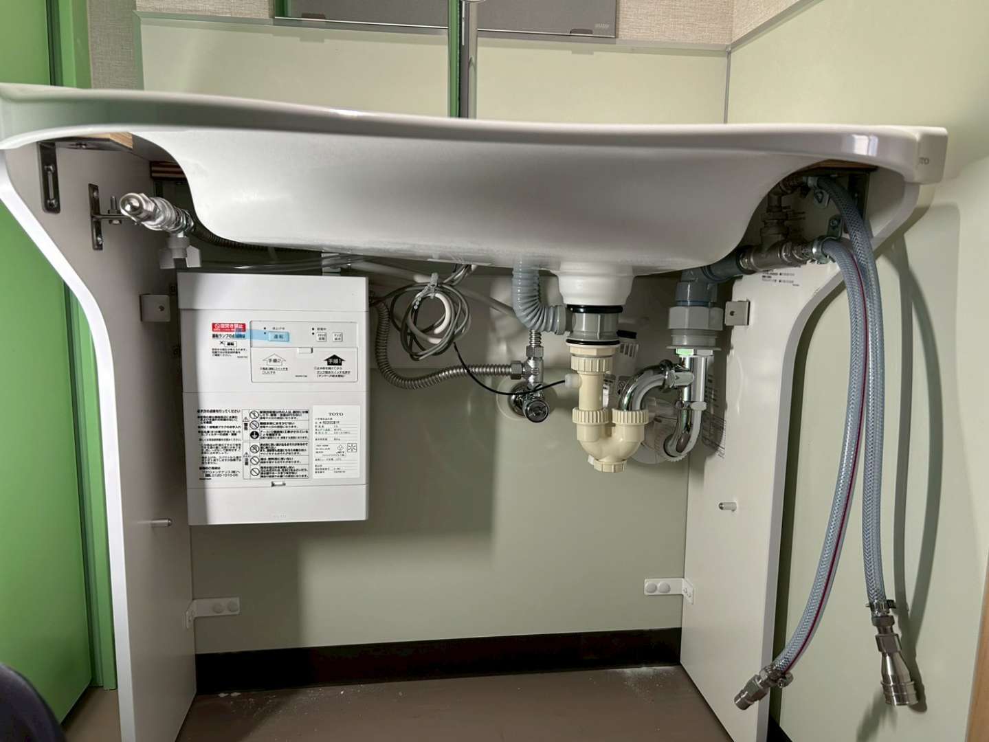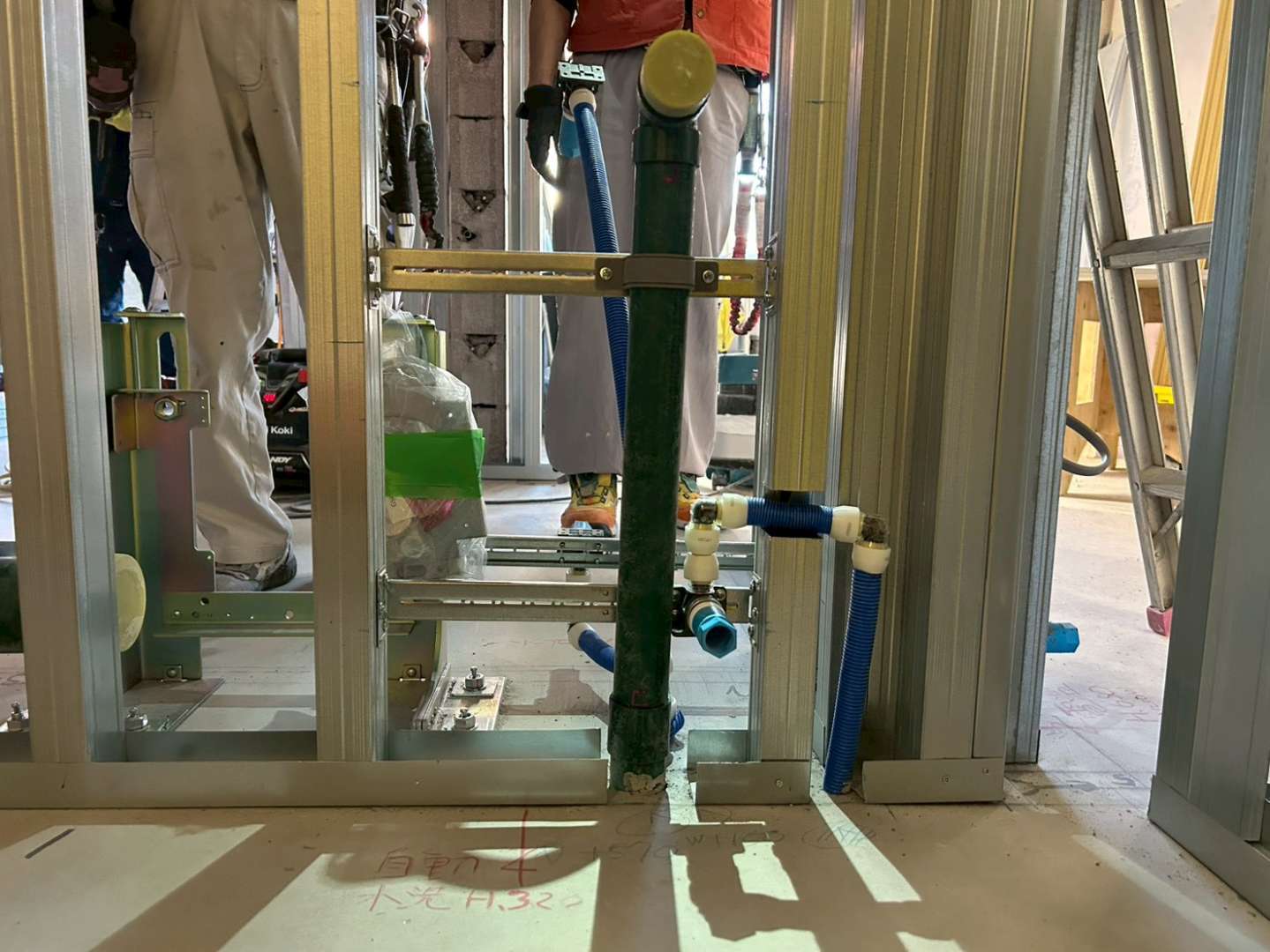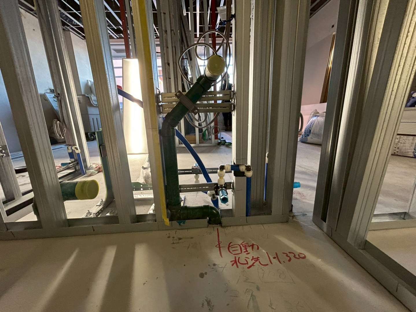 仕込み配管工事、器具付け、通水試験を経て無事に工事完了致しました